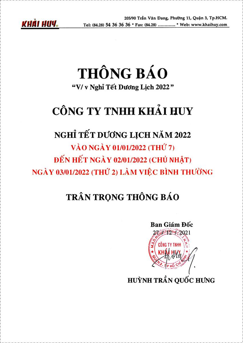 THÔNG BÁO NGHỈ TẾT DƯƠNG LỊCH 2022