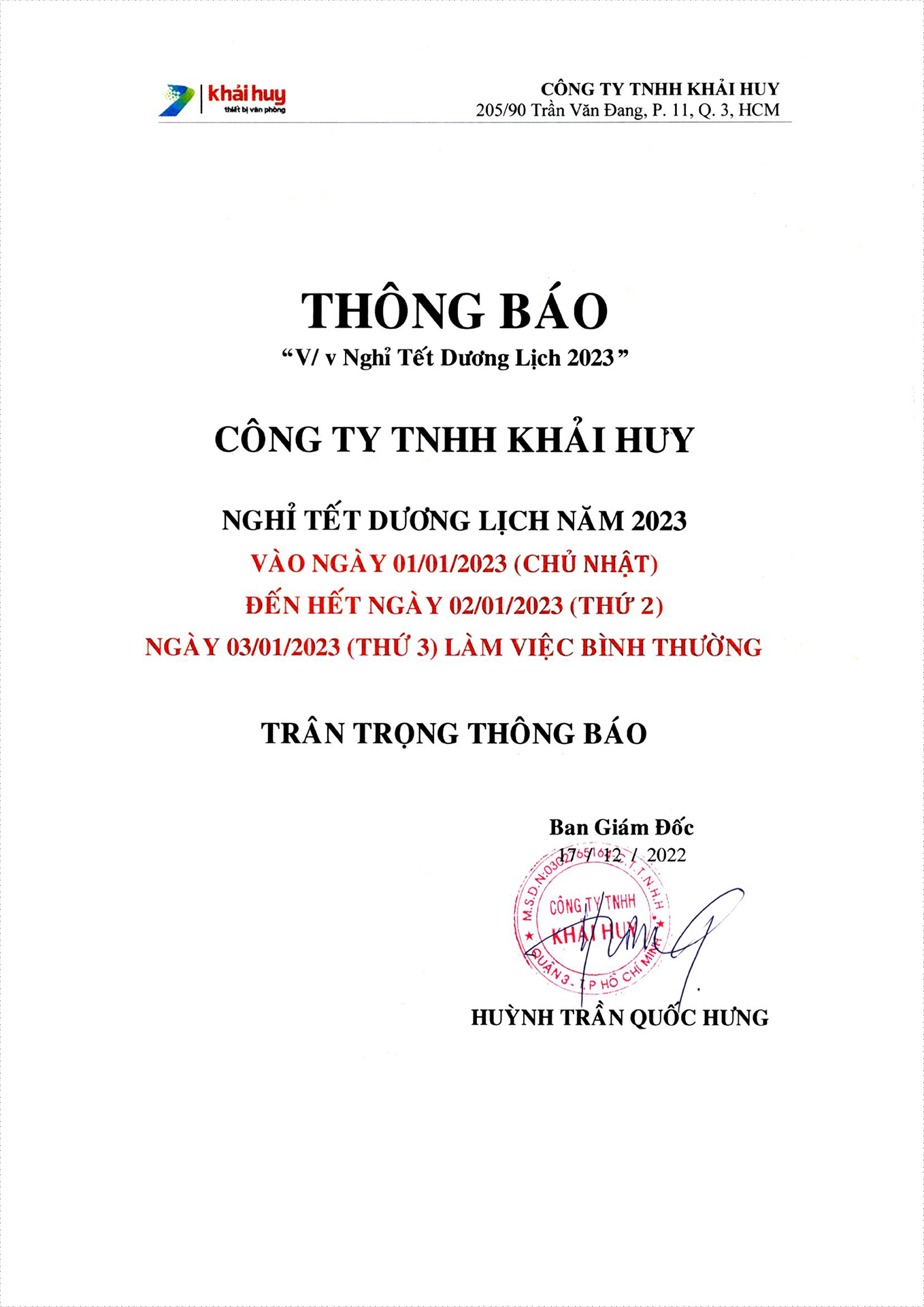 THÔNG BÁO NGHỈ TẾT DƯƠNG LỊCH 2023